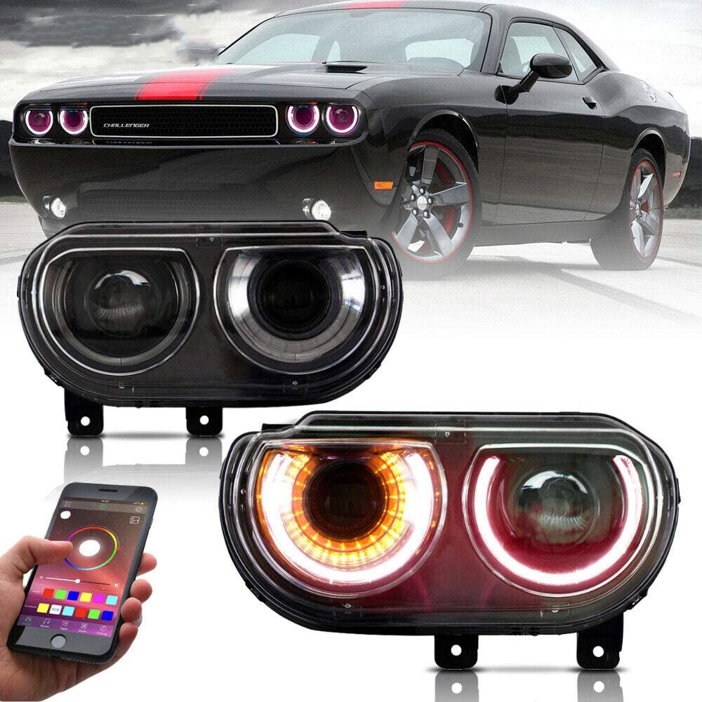 VLAND LED RGB Halo Headlights For Dodge Challenger 2008-2014 with Sequential [E-MARK. DOT.]